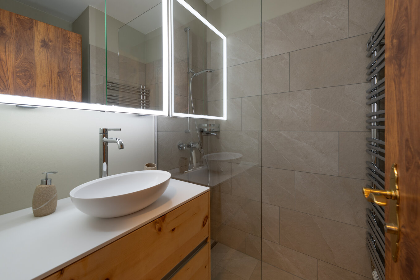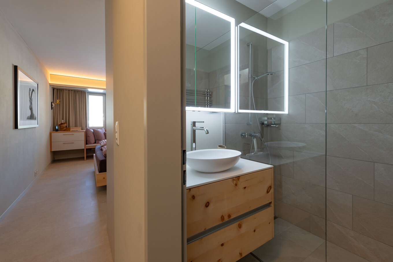 Diese Ferienwohnung wurde umfassend renoviert: Die Küche, die Schränke im Gang, der Boden sowie das ganze Schlafzimmer inklusive Bad erstrahlen nun in neuem Glanz. Ergänzt wird der Umbau im restlichen Teil der Wohnung durch hochwertige Innenausbauten - Arbeiten aus unserer früheren Weishaupt-Generation, die bis heute überzeugen und den Charakter der Räume prägen.