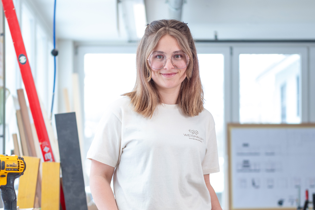 Lea Koller beginnt ihre Ausbildung zur Schreinerin EFZ im 2. Lehrjahr. Als gelernte Optikerin EFZ konnte sie bereits erste beruflichen Erfahrungen im präzisen und kundenorientierten Handwerk sammeln. Lea ist es aber ein Anliegen sich noch stärker handwerklich entfalten zu können, deshalb hat sie den Schritt gewagt, eine weitere Ausbildung in Angriff zu nehmen. Dieser Beruf vereint perfekt ihre Freude am kreativen Arbeiten und am Gestalten mit natürlichen Materialien.